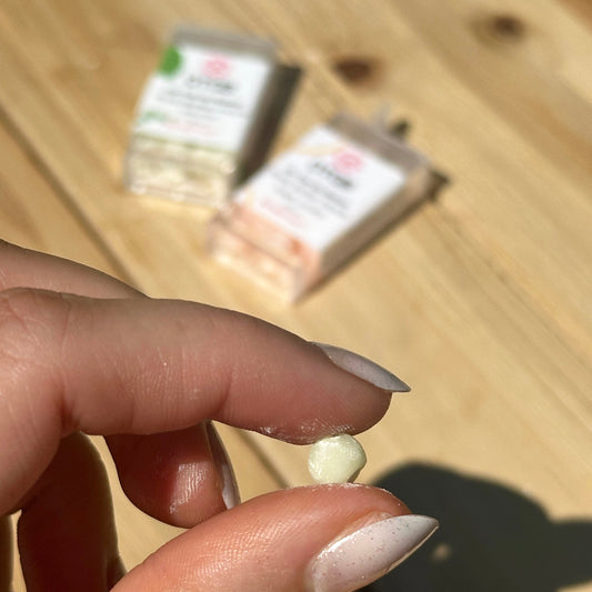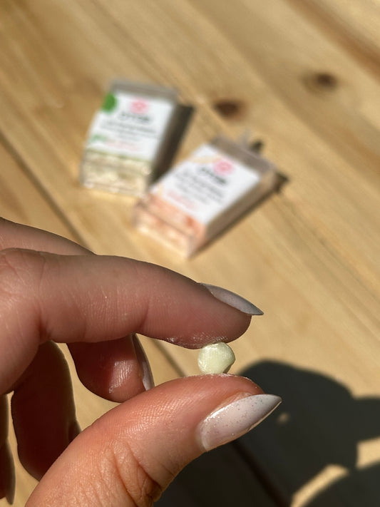 These pearls are saturated with rich raw butters and oils such as cocoa, shea, beeswax and more to lock in moisture. The best part? It only takes 1 pearl for both hands!